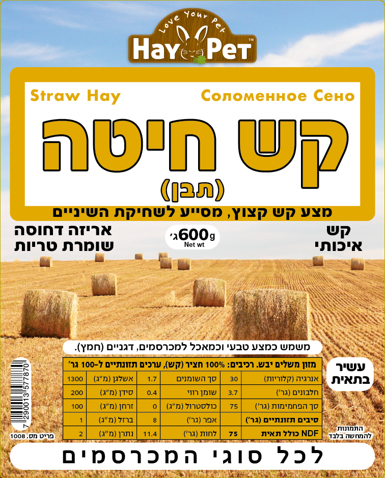 היי פט קש חיטה 600 גרם HAY PET