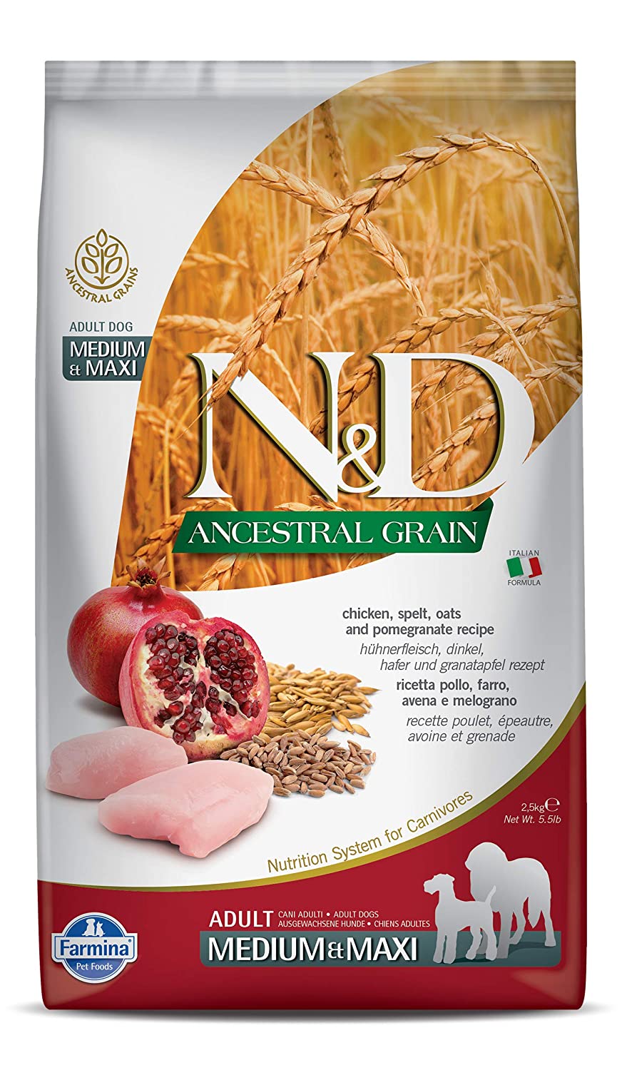 N&D LOW GRAIN פורמולת עוף ורימון מופחת דגנים לכלב בוגר