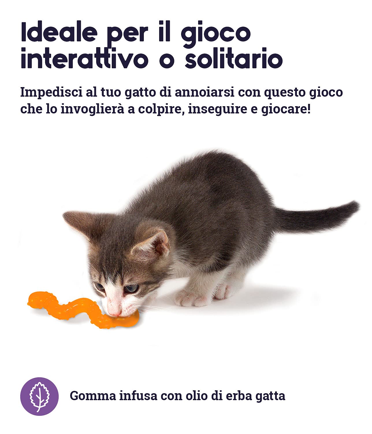 צעצוע עשוי מגומי עמיד ובטוח עם רכסים שעוזרים לעסות את החניכיים של חתלתולכם כשהם לועסים ונושכים. אידיאלי לגורי חתולים כאשר השיניים שלהם מתחלפים אך מתאימה לחתולים בכל הגילאים.